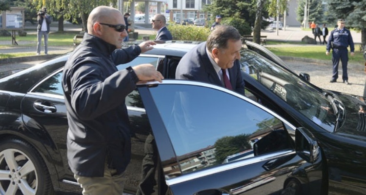 pratnje. Nakon samo nekoliko sekundi stajanja Dodikovo vozilo s ulubljenim