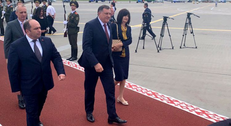 Dodika su dočekali potpredsjednik Vlade Bjelorusije Igor Lišenko, zamjenik ministra spoljnih poslova Andrej Vladimirovič i ambasador Bjelorusije za BiH sa sjedištem u Budimpešti Aleksandar Ponomarev.