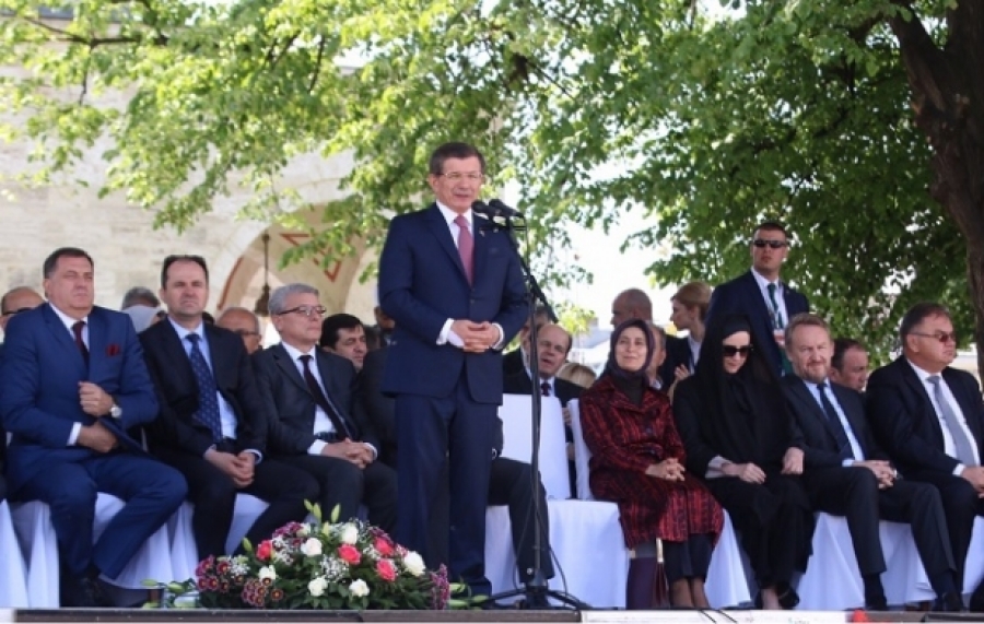 Davutoglu je izazvao incident kada je na vjerskom skupu u dvorištu obnovljene banjalučke džamije izjavio da su Turci "bili ovdje", da su "sada ovdje" i da će "tu biti zauvijek", te veličao Aliju Izetbegovića i "njegovo djelo".