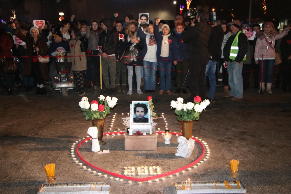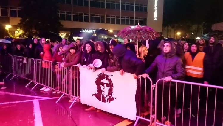 Nakon protestne šetnje po Banjaluci, članovi grupe "Pravda za Davida" okupili su se na "Krašovom" parkingu pored Muzeja savremene umjetnosti, gdje se treba održati koncert Harisa Džinovića u okviru proslave Nove godine.