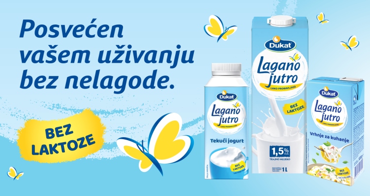 Jer lakoća nije odricanje. Lakoća je izbor da uživamo, u okusu, u trenutku, u svakom gutljaju. Zahvaljujući Dukat Lagano jutro liniji proizvoda, mlijeko, jogurt i vrhnje ponovo su dio svakodnevnog užitka, bez brige o nadutosti, grčevima ili nelagodi.