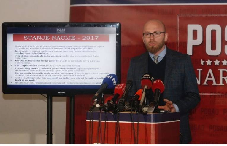 "Još, uprkos najavama, nema rasterećenja privrede. Čak se uvode nova poreska i paraporeska opterećenja. Dug javnih preduzeća iznosi više od tri miliona KM i ugrožava penzioni i zdravstveni sistem. Borba protiv korupcije daje skromne rezultate i tek dva odsto od svih presuda se odnosi na korupciju i privredni kriminal. I dalje se više od četvrtine budžeta troši na plate", rekao je Arapović.