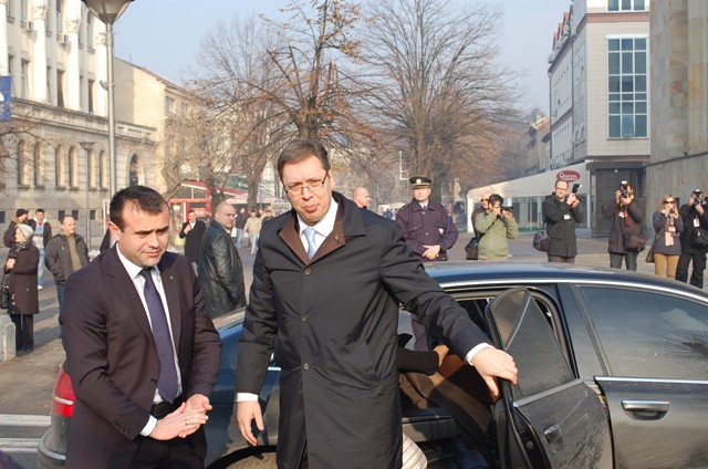 Dolazak predstavnika vlade Srbije je kasnio, pa je Vučić u Banjaluku stigao u 13 časova. Prvi potpredsjednik vlade Srbije je svoju posjetu počeo u Palati Republike ispred koje ga je čekao veći broj Banjalučana.