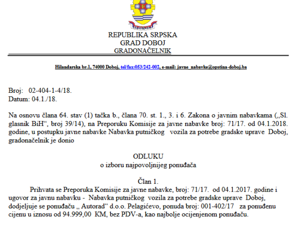 Uprava dobojskog „Vodovoda“ u automobilu od 133.000 KM