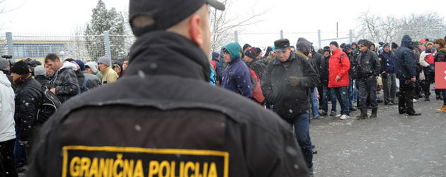 "Mi tražimo kolektivno iseljenje, mi idemo iz zemlje", rekao je Mujo Gavranović, potpredsjednik Sindikata Konjuha jednom od graničnih policajaca.