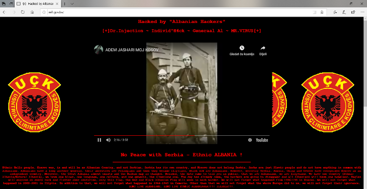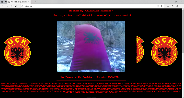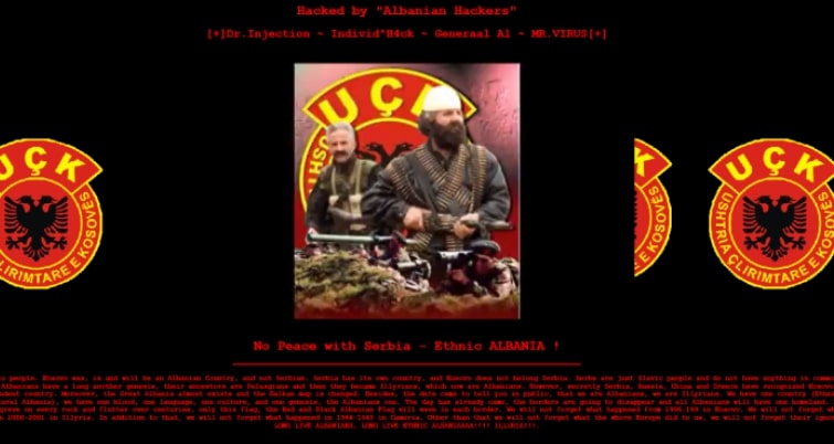 Hakeri su na engleskom jeziku napisali "Nema mira sa Srbijom – etnička Albanija", te "Kosovo bilo i biće albanska zemlja, ne srpska". Takođe su napisali: "Srbija ima svoju zemlju, i Kosovo ne pripada Srbiji. Srbi su samo slovenski narod, i nemaju ništa zajedničko sa Albancima… Velika Albanija već postoji i mapa Balkana se promijenila. Taj dan je već došao i svi Albanci će živjeti u jednoj domovini. Živjeli Albanci, živjela etnička Albanija! Ilirija!!!"