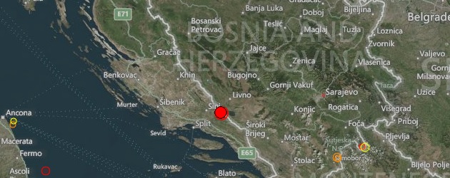 Zemljotres magnitude 4,8 stepeni po Rihteru dogodio se u 8:58 minuta na 13 km od Trilja i 39 km od Splita u Hrvatskoj, na dubini od dva kilometra.