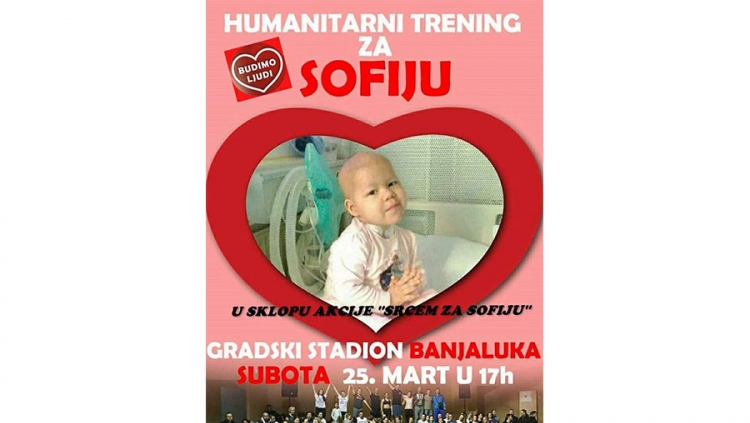 Na ulazu u stadion biće postavljena kutija za dobrotvorne priloge koji će biti uplaćen na žiro račun za liječenje trogodišnje Sofije Mićević.