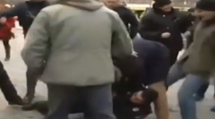 Na snimku se jasno vidi kako muškarac prilazi već oborenom policajcu i brutalno ga udara nogom u leđa.