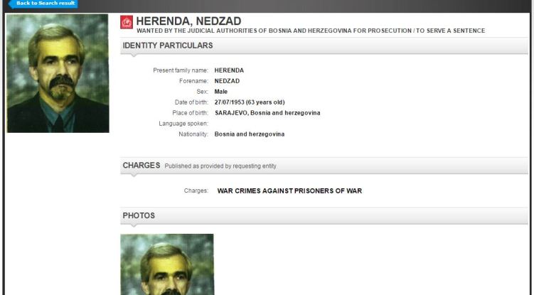 Pravosudni organi BiH Herendu potražuju zbog ratnih zločina u BiH i političkih ubistava za koje se sumnjiče pripadnici "Ševa".