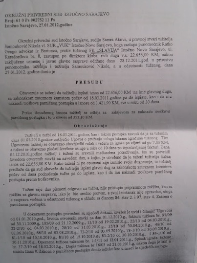 Presuda protiv FK Slavija