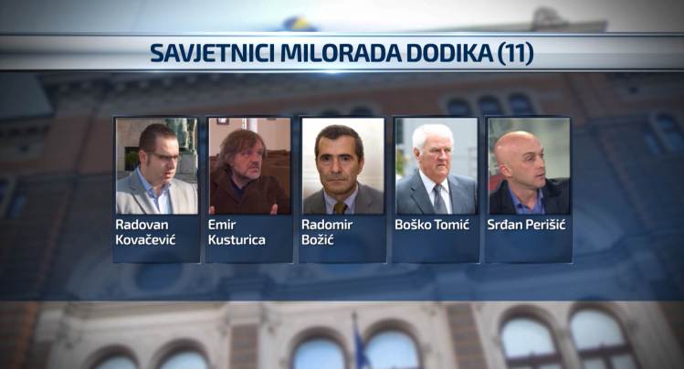 No, predsjedavajući Dodik ima i savjetnika kojima na stranici Predsjedništva nije definisana uloga, poput Emira Kusturice, Boška Tomića kao bivšeg ministra i Srđana Perišića kao profesora sa Filozofskog fakulteta u Istočnom Sarajevu