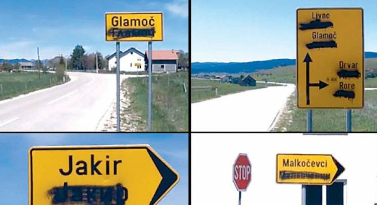 Od linije entitetskog razdvajanja između opštine Osmaci u Republici Srpskoj i Kalesije u Federaciji BiH /FBiH/, na magistralnom putu prema Tuzli, precrtani su skoro svi saobraćajni znakovi koji na ćiriličnom pismu označavaju naseljena mjesta.