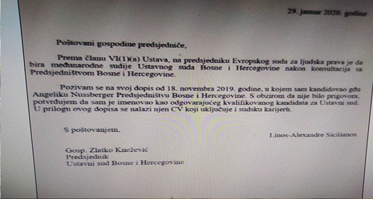 Како није било никаквог приговора од стране Предсједништва, предсједник Европског суда за људска права обавјестио је 29. јануара предсједника Уставног суда БиХ Златка Кнежевића да је именовао њемачког судију Ангелику Нусбергер.