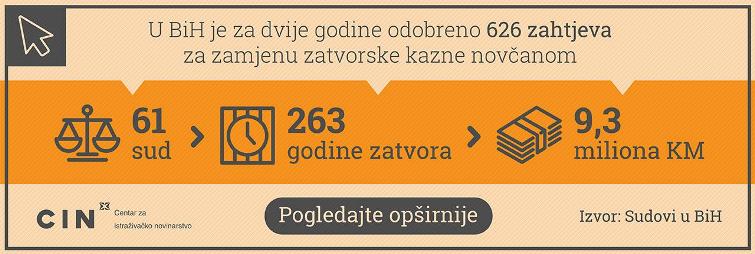 Dan zatvora su računali u rasponu od 13,8 do 100 KM. Istraživanje Centra za istraživačko novinarstvo (CIN) pokazuje da sav ovaj novac još nije uplaćen jer osuđeni odugovlače ili plaćaju u ratama.