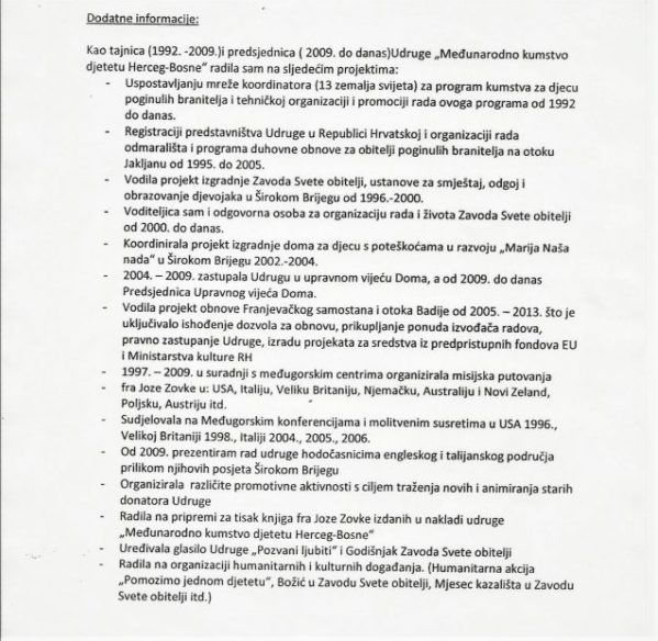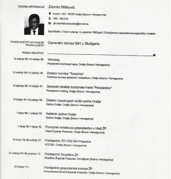 Foto: Faksimil biografije Čovićevog kandidata, Vesne Ćužić, inače dugogodišnje voditeljice vjerske udruge, koja je prije nekoliko godina postavljena za ambasadoricu u Švedskoj