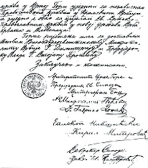 Факсимил одлуке Црногорске митрополије о уједињењу