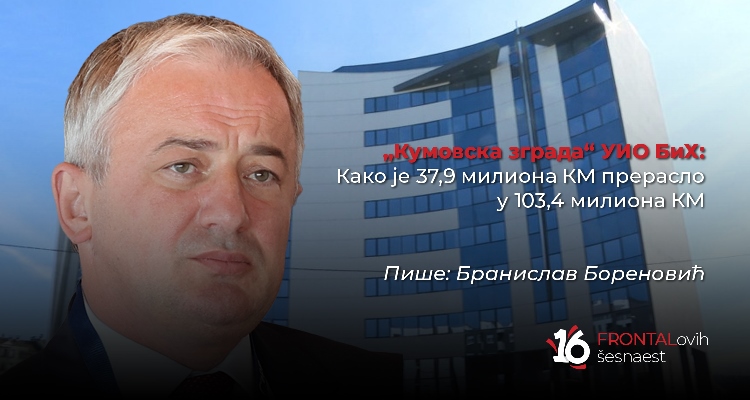 Ова контроверзна набавка објекта за УИО, у јавности позната као “кумовска” зграда, је набавка која је од првобитних планираних 37,9 милиона КМ за набавку у 2013. години одлуком власти у БиХ достигла садашњи невјероватан износ од 103,4 милиона КМ!!!