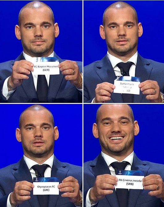 Na iznenađenje mnogih, prilikom izgovora imena srpskog predstavnika u Ligi šampiona, Snajder je na licu imao širok osmijeh, dok je čitavim tokom žrijeba imao ozbiljan izraz lica.
