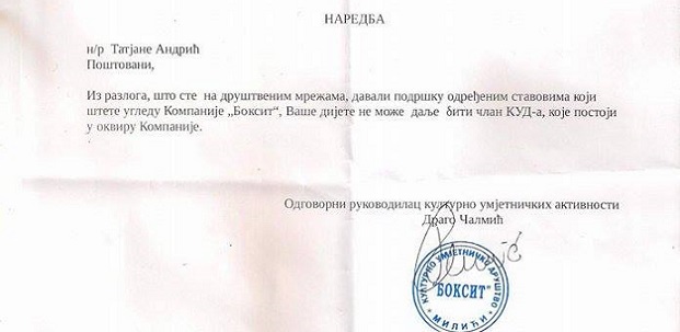 Razlog je svirep i skoro nevjerovatan – fejsbuk komentar koji "šteti ugledu Kompanije Boksit", koja je u vlasništvu Rajka Dukića." Uostalom, pogledajte i sami!