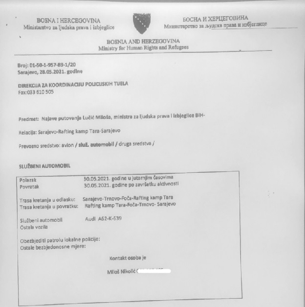 Pokušali smo provjeriti u Ministarstvu za ljudska prava i izbjeglice da li je bio u službenoj posjeti rafting kampu Tara ili je riječ o privatnom putovanju. Nakon nekoliko poziva nismo dobili odgovor, a potom su nam rekli da pošaljemo upit pisanim putem. Odgovor nismo dobili ni nakon toga.