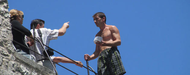 Momci koji skaču skupljaju, hodaju po ivici mosta, mole, kume, traže, prevode, cjenkaju se kako bi se prikupilo 20, 25, 30 evra za jedan skok. Kažu tek po nekoliko puta dnevno. Kriza, pa ni stranci neće da troše više nego što moraju.