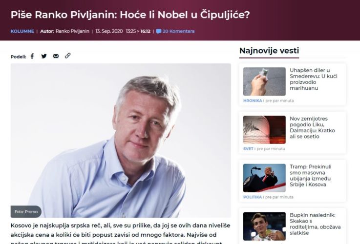 I tako, razmišljajući o tome, skrolujem niz kolumnistički dio ovog portala i ugledam naslov komentara Ranka Pivljanina „Hoće li Nobel u Čipuljiće?“, pa pomislim kako se, evo, namjestilo da već dva-tri mjeseca za Preokret maltene pišem jedan te isti tekst.