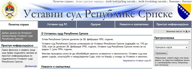 Na veb stranici Ustavnog suda Republike Srpske juče se pojavio sadržaj o tri jezika na kojem su dostupne informacije na stranici: srpskom, "bosanskom" i hrvatskom, ali je u međuvremenu taj sadržaj promijenjen u skladu sa Ustavom Republike Srpske.