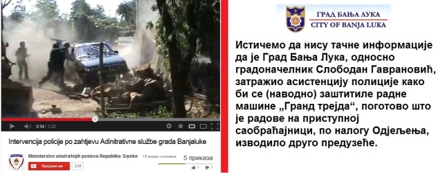 Video klip nosi naziv "Intervencija policije po zahtjevu Adinitrativne službe grada Banjaluke"