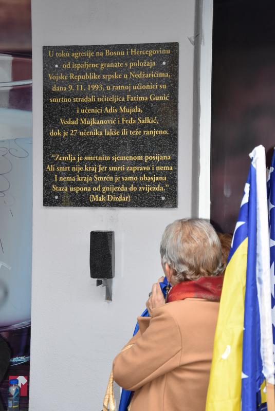 "Na spomen-obilježju Kazani navedena su imena svih žrtava, koja smo mi dobili od Instituta za istraživanje nestalih. Dakle, to je zvanični podatak, koji smo dobili od Instituta. Druga crtica koju želim naglasiti jeste da ni na jednom spomeniku u Sarajevu, ni na Spomeniku djeci ubijenoj u opkoljenom Sarajevu, ni na Spomeniku žrtvama genocida u Srebrenici, ne piše ko je počinilac".