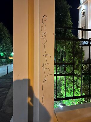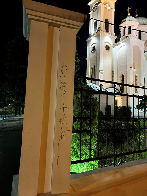 Na ogradi pravoslavne crkve u Tuzli ispisane vulgarne poruke (FOTO)