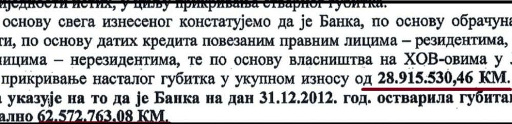 No, ni prikazani gubitak od 33,6 miliona KM nije na bio teret vlasnika Banke, kako se to u javnosti shvatilo i prikazivalo.