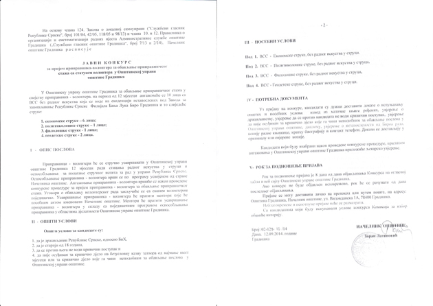 12.09.2014. godine, objavljen je Konkurs za prijem 10 pripravnika-volontera u