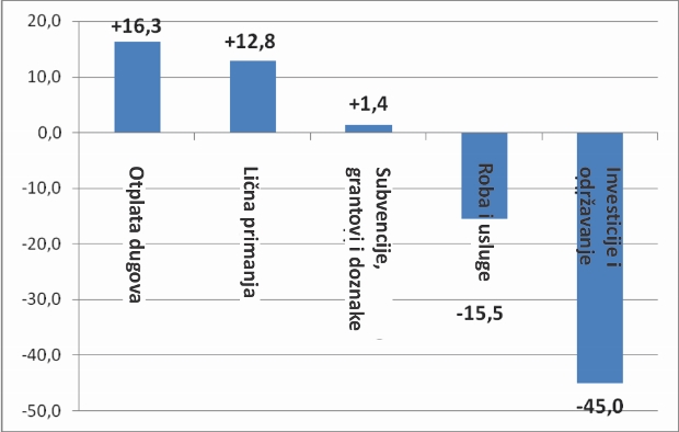 Sa druge strane, rashodi za investicije i održavanje su se u odnosu na 2007. godinu smanjili za cijelih 45 miliona KM bez obzira na postojeće potrebe za kapitalnim ulaganjima.