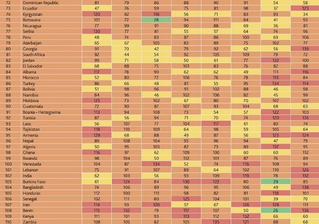 BiH je na 91. mjestu ove liste, Srbija se nalazi na 77, Makedonija na 69, Crna Gora na 65, a Hrvatska na 50. mjestu.