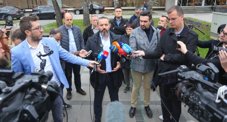 Novinari su zalijepili trake preko usta i slomili olovke, simbolično pokazujući do čega će ovakav zakon dovesti te poručili da će objaviti imena i prezimena svih poslanika koji danas dignu ruku za kriminalizaciju klevete i uvrede.