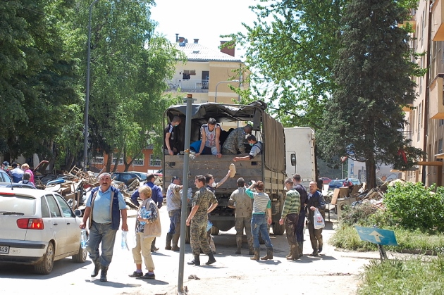 Zaustavljamo se kod jedne od zgrada. Čistači komšije, rodbina i stanari znatiželjno nas posmatraju. Otvoreni za razgovor kažu nam da ni sami ne vjeruju šta ih je snašlo. Niko, složni su, nije mogao ni naslutiti da će se sve ovako odigrati, da će voda ovom brzinom prodrijeti. Žale se što ih niko nije blagovremeno obavijestio. Ali, šta je tu je. Povratka nema, a napredak ide sporo, jer kažu nam, pomoći još nisu dobili. Žale se što ne vide neku organizaciju u čišćenju i odvoženju nagomilanog otpada. Uglas ističu da su im prijeko potrebni rukavice, lopate, čizme, sredstva za čišćenje.