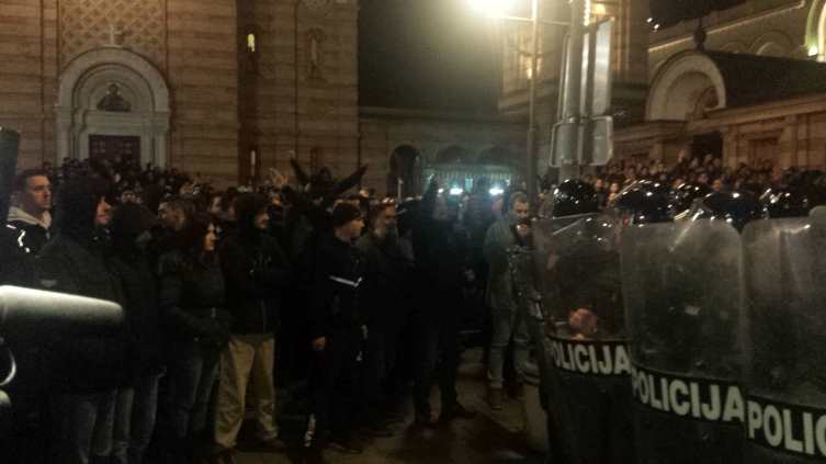 Kako javlja novinar našeg portala, policija je zamolila građane da se mirno raziđu, na šta su građani skandirali: "Idite na Kosovo". Čuli su se zvižduci upućeni policiji, ali i skandiranje "ubice, ubice". U jednom trenutku je bio blokiran i saobraćaj, ali je policija vrlo brzo uspjela da građane potisne sa kolovoza.