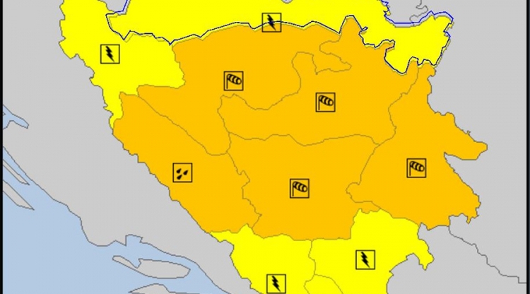 Federalni hidrometeorološki zavod BiH izdao je narandžasto upozorenje u većem dijelu Bosne i Hercegovine zbog vjetra i u pojedinim dijelovima zbog količine padavina.