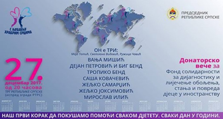 Brojni humanitarni nastupi od 20 časova u dvorani Borik organizovani su da bismo svi zajedno podržali misiju i ove manifestacije, ali i Fonda – pokušati pomoći svakom djetetu, svaki dan u godini.