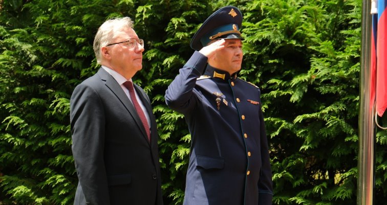 Prethodno je intonirana ruska himna i na jarbol visine šest metara podignuta zastava Ruske Federacije.
