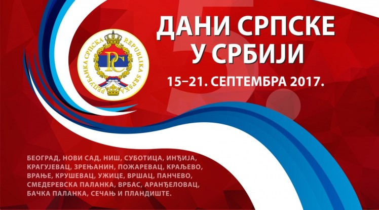 Manifestacija "Dani Srpske u Srbiji" biće otvorena večeras u 18.00 časova u Beogradu, a zatvaranje je planirano 21. septembra u Novom Sadu.