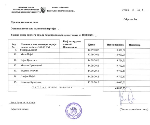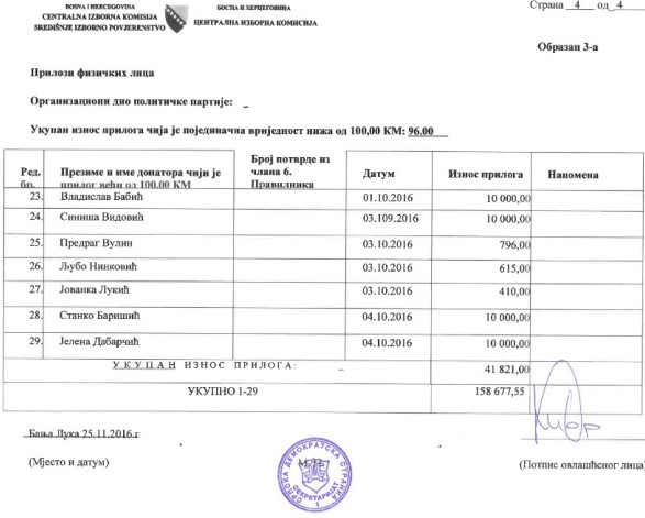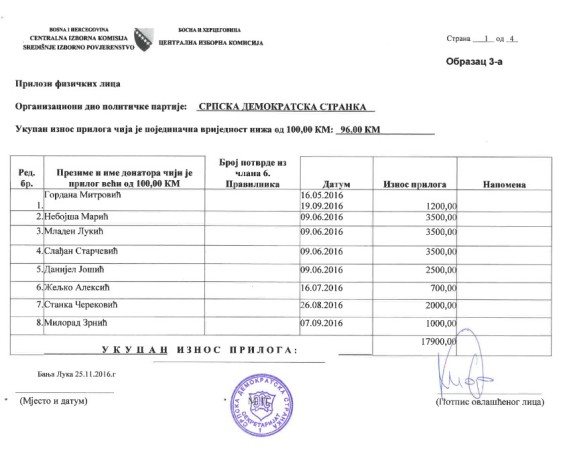 U nastavku pogledajte spisak najvećih donatora Srpske demokratske stranke u periodu od početka maja do kraja oktobra protekle godine.