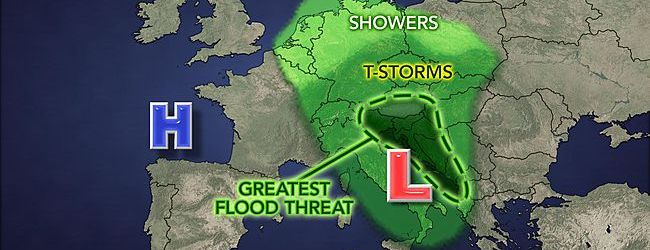 istočne Italije do Bugarske. Dnevni pljuskovi će pogoditi područje od