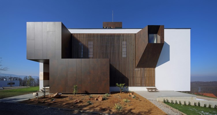 Osnovni element kuće njena je potpuno transparentna strana koja se otvara prema zapadnom suncu, bazenu i gradu u daljini. Ovime je postignuta suštinska kvaliteta prostora unutar kuće, bez jasno određene granice između unutrašnjeg prostora i vanjskog svijeta. S druge strane, kuća je gotovo potpuno zatvorena ka istoku i neposrednom okruženju, tvoreći tako fasadni front koji je okrenut samom sebi. Pravougaoni bijeli kubus kuće upotpunjen drvenim fasadnim elementima čini kuću jednom od izražajnih tačaka u urbanoj silueti Banja Luke.