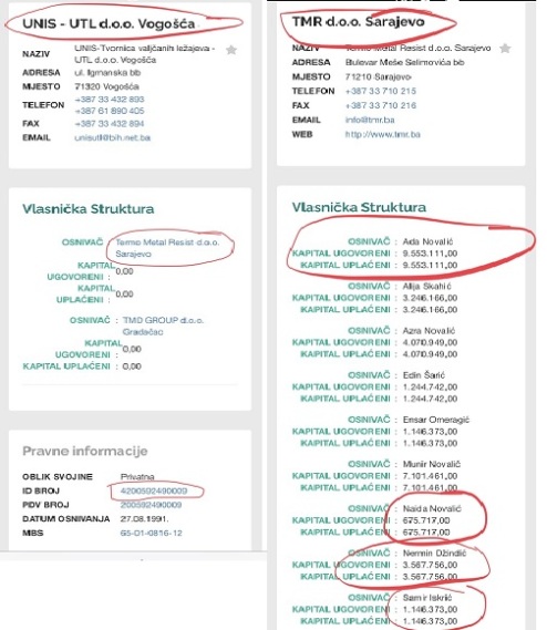 Ključna riječ u ovom dokumentu je „UTL“. U pitanju je, dakle, kompanija čiji su suvlasnici, prema sudskom registru, ali i ID broju, TMR d.o.o. Sarajevo, te TMD Gradačac. Osnivači TMR-a, koji je suosnivač UTL-a Vogošća su: Ada Novalić, kćerka premijera Fadila Novalića, zatim članovi iste porodice Azra, Munir i Naida Novalić, potom Nermin Džindić, federalni ministar energije rudarstva i industrije, te Samir Iskrić, šef Kabineta federalnog premijera Fadila Novalića. Drugi suvlasnik UTL-a je TMD Gradačac čiji je direktor dugogodišnji poslovni partner Fadila Novalića – Sead Hanić.