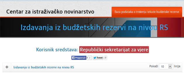 U CIN-ovoj bazi o potrošnji budžetskih rezervi RS-a navedeno je i još 940 000,00 KM koji su 2012. godine utrošeni na vjerske projekte.