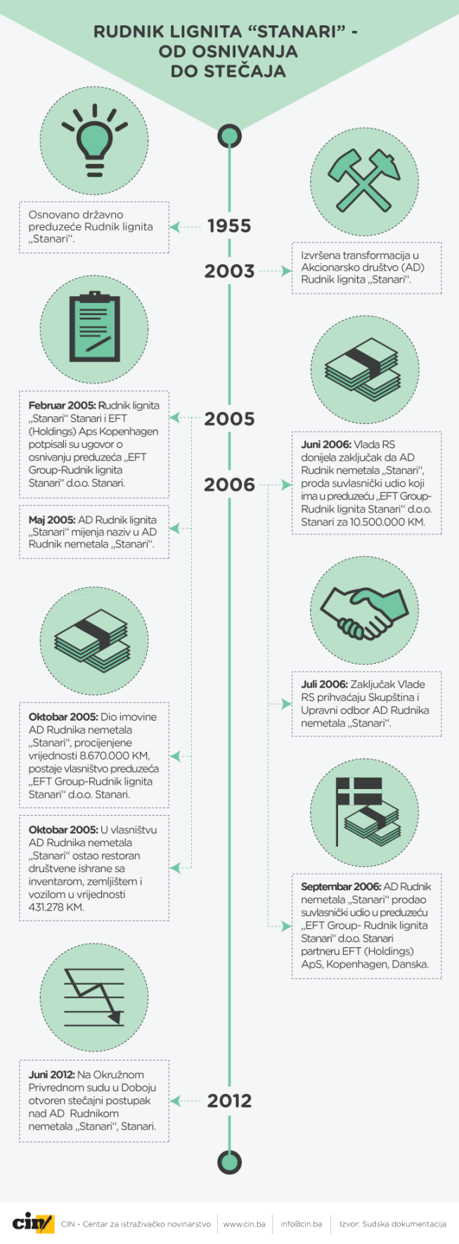 Ipak, na osnovu te procjene oprema i građevinski objekti su postali imovina novoformiranog preduzeća „EFT Group – Rudnik lignita Stanari“, ali zemljište nije uknjiženo na ime novog vlasnika.