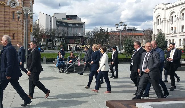 Delegaciju Srbije koju predvodi premijerka Brnabić, a u kojoj su ministri rudarstva i energetike i zaštite životne sredine, Aleksandar Antić i Goran Trivan, direktor Kancelarije za upravljanje javnim ulaganjima Marko Blagojević i predsednik Privredne komore Srbije Marko Čadež, ispred Gradske uprave Grada Banjaluka dočekao je gradonačelnik Igor Radojičić.