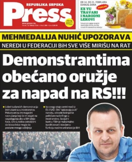 „Lideri Tuzlanskih demonstracija instruisani su u inostranstvu. Pokazivani su im magacini naoružanja koji će im stajati na raspolaganju ako u BiH izbije haos. Oni su toliko ostrašćeni da bi ova kriza mogla da postane mnogo ozbiljnija.“